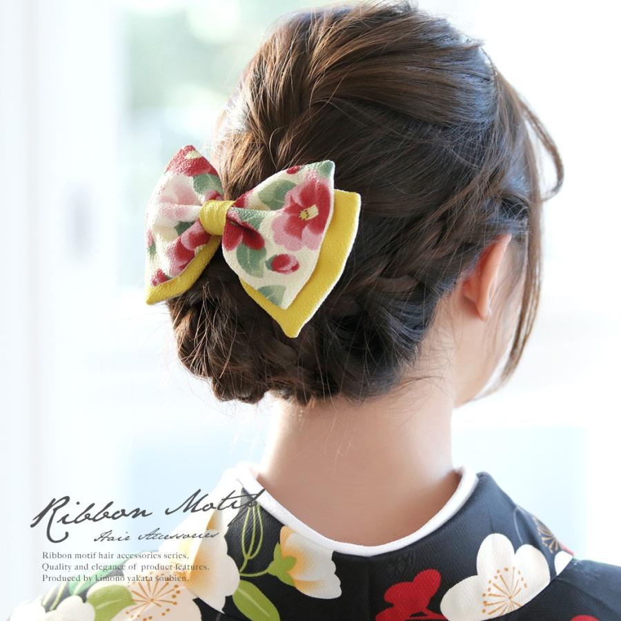 髪飾り 卒業式 リボン 黄色 イエロー 白 アイボリー 椿柄 花柄 縮緬 ちりめん コーム 成人式 振袖 袴 ヘアアクセサリー 日本製 Kaz6046sn 3195 きもの館 創美苑 通販 Yahoo ショッピング